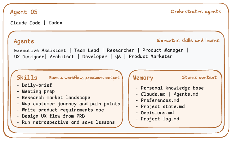I've built a system — configured agents, codified workflows, and shared infrastructure that gets smarter over time. Here's how it's structured.
